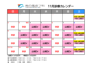 10月から木曜・日曜・祝日が休診となります。受診の際は診療カレンダーを確認お願いします。