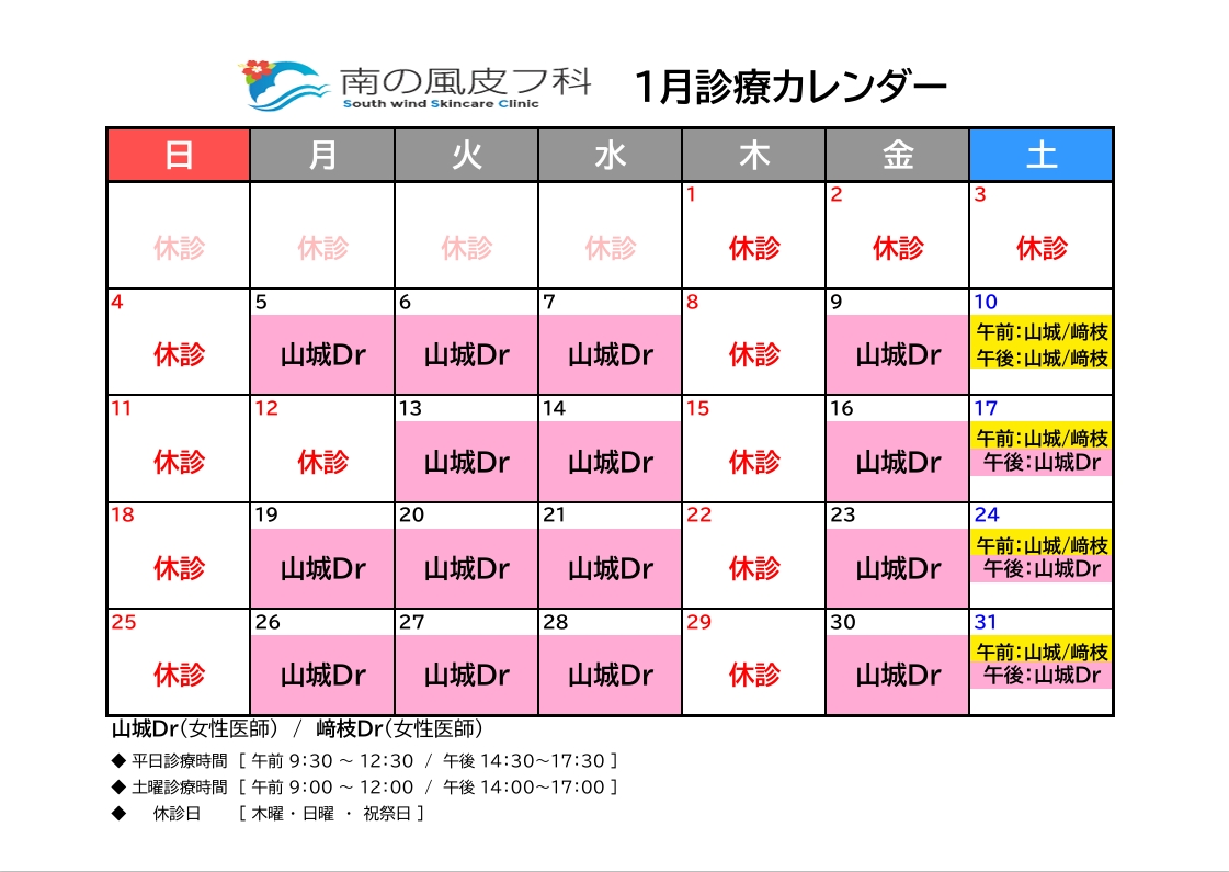 1月診療カレンダー📅